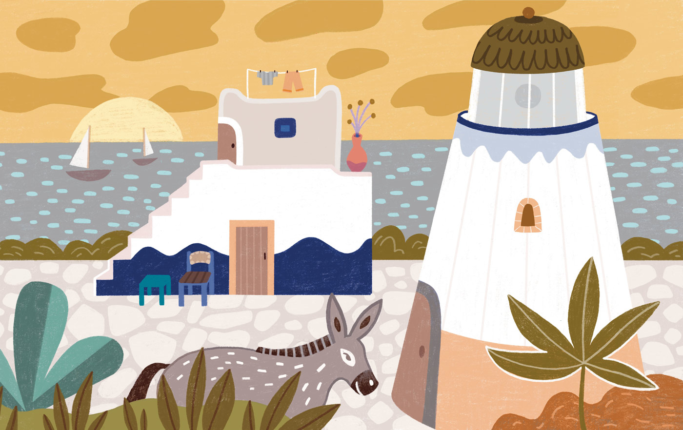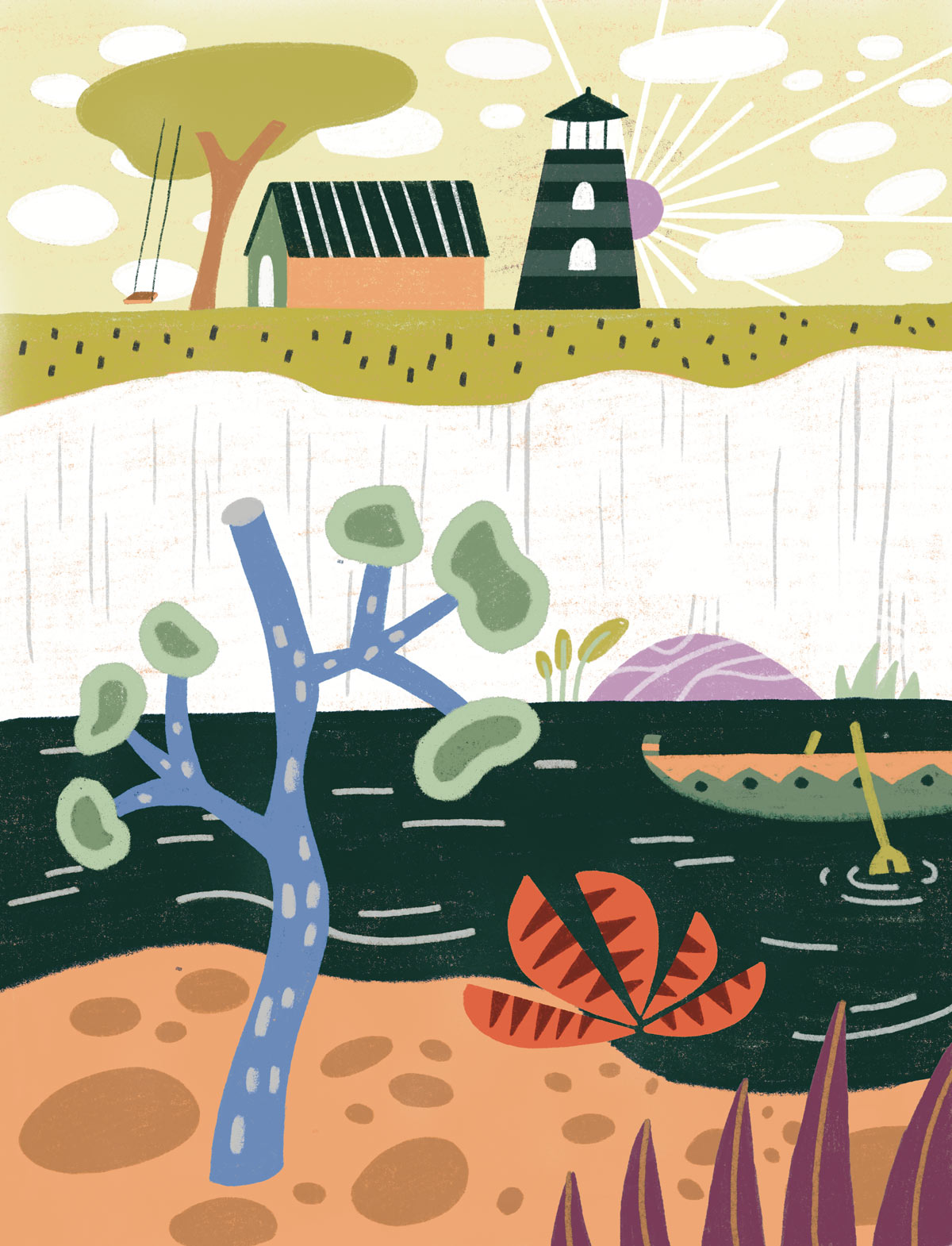 Illustrations réalisées pour un projet de trois fresques sur le thème de l’eau, la navigation et la nature