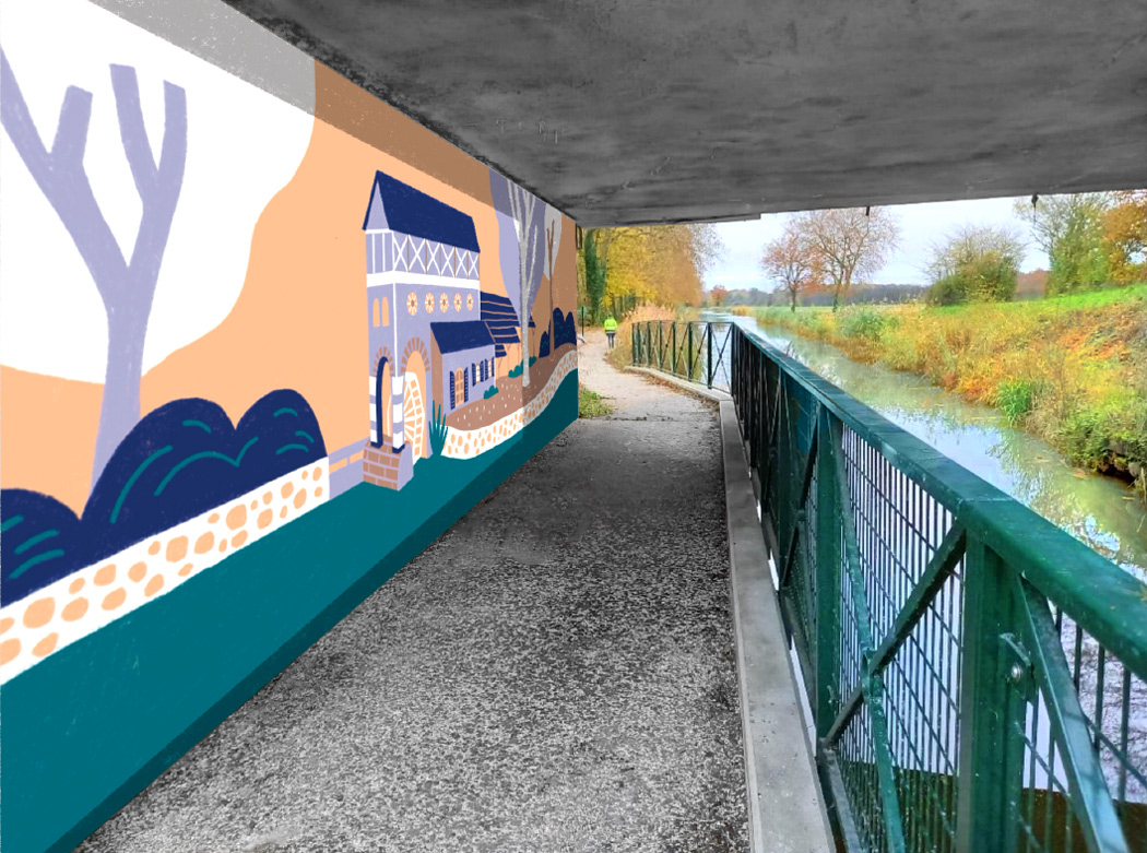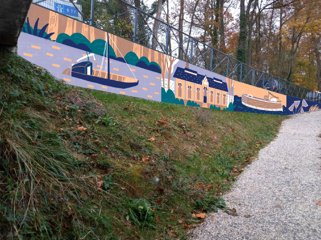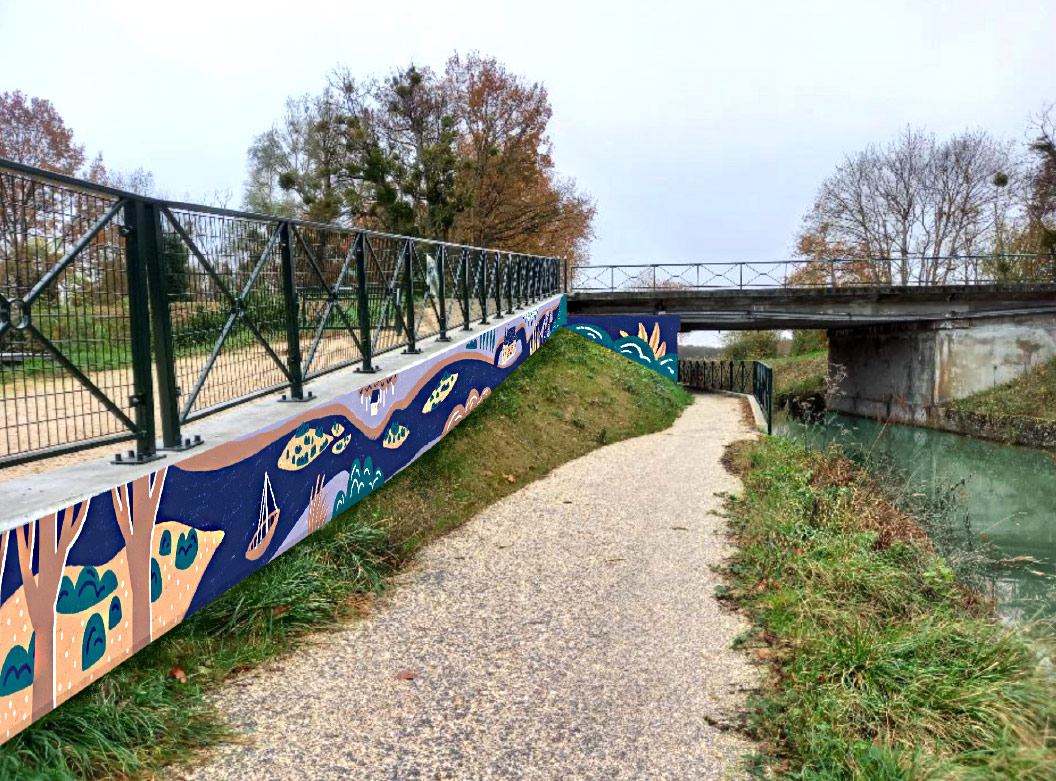 Les fresques étaient destinées à être installées au bord du canal, sur trois murs longeant la voie verte, afin d’accompagner et d’agrémenter la promenade des passants, à vélo comme à pied.